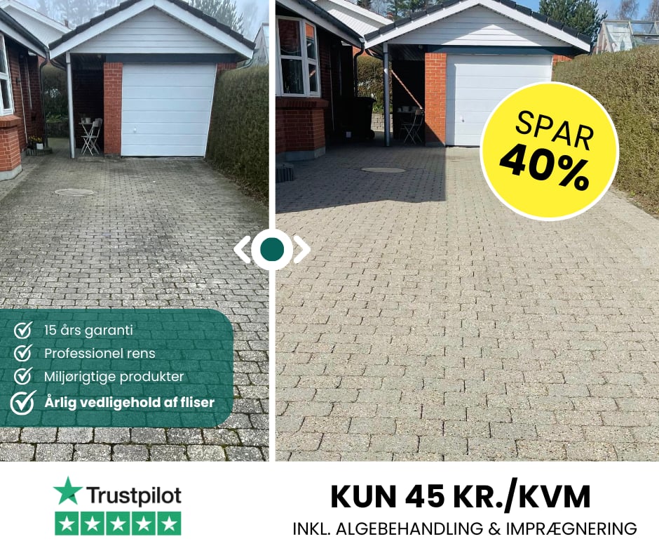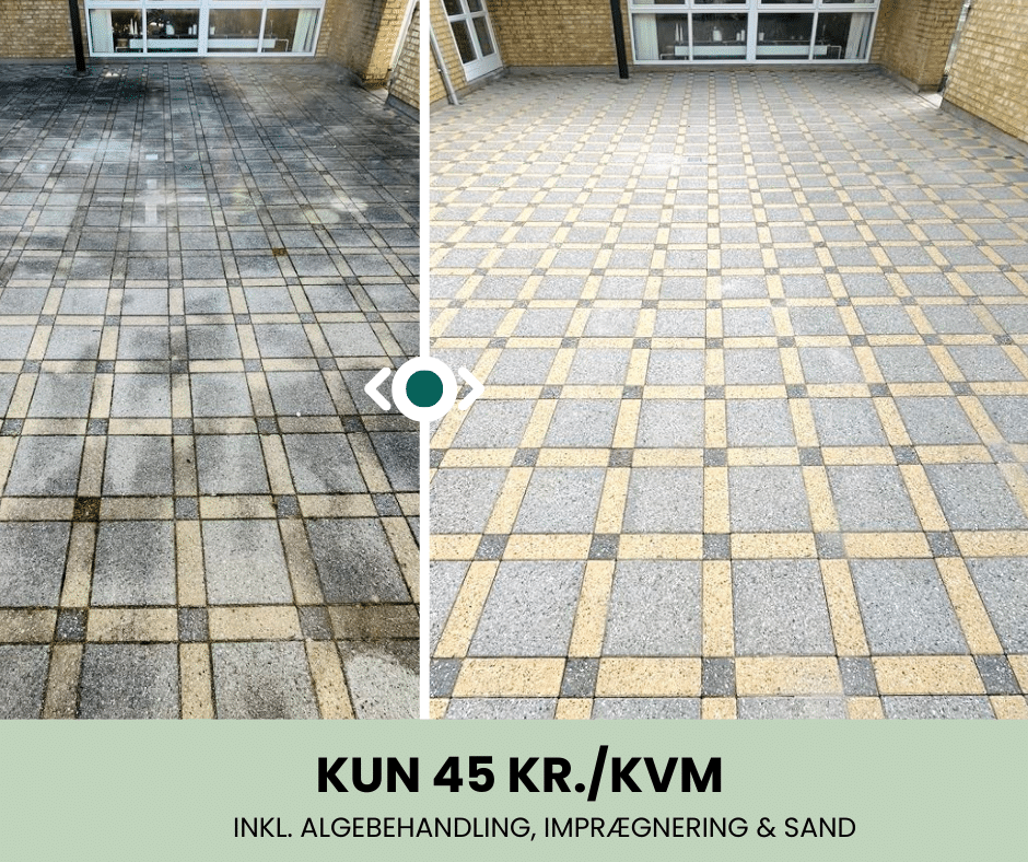 Jeg har mange års erfaring med fliserens, facaderens og rensning af træterrasser i det østjyske område og benytter kun miljøvenlige produkter og professionelt udstyr. Uanset om du har en indkørsel i Vejle, en terrasse i Fredericia eller et tag i Kolding – jeg står klar til at hjælpe.